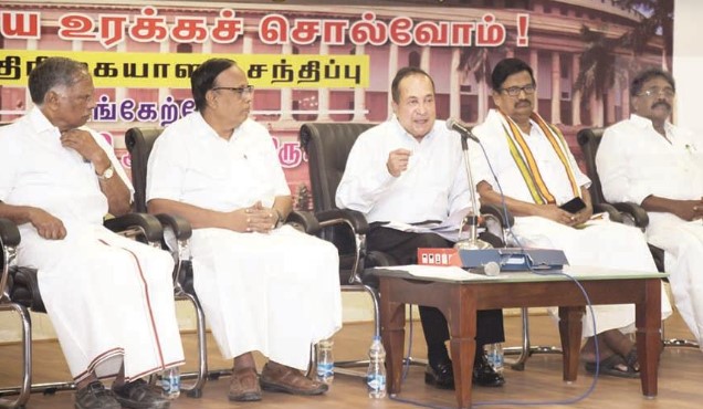 சென்னை காமராஜர் அரங்கத்தில் புதனன்று (மே 31) ‘தேசிய சிந்தனையாளர்கள் பேரவை’ சார்பில் செய்தியாளர் சந்திப்பு நடைபெற்றது. இதில் தமிழ்நாடு காங்கிரஸ் கமிட்டி தலைவர் கே.எஸ்.அழகிரி, மார்க்சிஸ்ட் கம்யூனிஸ்ட் கட்சியின் அரசியல் தலைமைக்குழு உறுப்பி னர் ஜி.ராமகிருஷ்ணன், காங்கிரஸ் செய்தி தொடர்பாளர் ஏ.கோபண்ணா, சட்டமன்ற உறுப்பி னர் பிரின்ஸ் உள்ளிட்டோர் கலந்து கொண்டனர். இந்த நிகழ்வில் என்.ராம் செய்தியாளர்களிடம் கூறியதாவது: