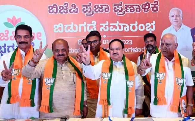 கர்நாடக சட்டமன்ற பொதுத்தேர்தலை முன்னிட்டு அம்மாநில பாஜக தனது தேர்தல் வாக்குறுதியை அறிக்கையாக இன்று வெளியிட்டது. அக்கட்சியின் தேசிய தலைவர் நட்டா இதனை வெளியிட்டார். அவர் பேசுகையில், ‘’பாஜக ஆட்சி அமையும். மக்கள் நலன் அரசு தொடரும். மோடி மீது மக்கள் மிகுந்த நம்பிக்கை வைத்துள்ளனர். இரட்டை என் ஜின் வேகம் மாநிலத்தை வளர்ச்சிப் பாதைக்கு கொண்டு செல்லும்’’ என்றார்.