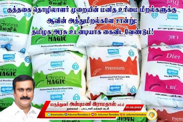 எந்த பொறுப்புடைமையும் (Accountability) இல்லாத குத்தகைத் தொழிலாளர் முறை தேவையா? என்பது தான் கடந்த மூன்று ஆண்டுகளாக பாட்டாளி மக்கள் கட்சி எழுப்பி வரும் வினா ஆகும். இந்த முறையில் உள்ள குறைகளை ஆவின் நிறுவனத்தில் நடந்த சுரண்டல் அம்பலப்படுத்தியுள்ளது. ஆவின் நிறுவனத்தில் குழந்தைத் தொழிலாளர்கள் பணியில் ஈடுபடுத்தப்பட்டதற்கு காரணமானவர்கள் யார்? என்பது கண்டறியப்பட்டு அவர்கள் மீது நடவடிக்கை எடுக்கப்பட வேண்டும்.