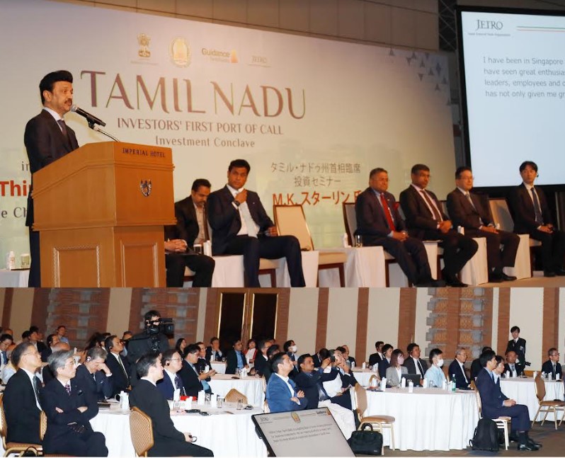 ஜப்பான் வெளிநாட்டு வர்த்தக அமைப்புடன் இணைந்து நடத்தப்பட்ட மாபெரும் முதலீட்டாளர்கள் மாநாட்டில் தமிழ்நாடு முதலமைச்சர் மு.க. ஸ்டாலின் கலந்து கொண்டு, ஜப்பானிய நிறுவனங்கள் தமிழ்நாட்டில் அதிக அளவில் முதலீடுகள் மேற்கொள்ள அழைப்பு விடுத்தார்.