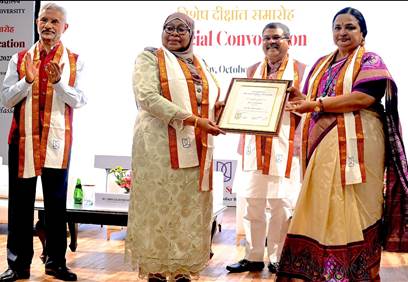 உலகளாவிய வளரும் நாடுகளின் நோக்கத்திற்கு இந்தியா உண்மையாகவும், விசுவாசமாகவும் உள்ளது என்பதை அவர் எடுத்துரைத்தார். பன்முகத்தன்மையின் முக்கியத்துவத்தை இந்தியா தொடர்ந்து நிலைநிறுத்தி வருகிறது என்பதையும், சந்தையை விட சமூகத்தை மதிப்பதையும் (லாபத்தை விட மக்கள்) அவர் பாராட்டினார். கவுரவ டாக்டர் பட்டம் வழங்கிய மதிப்பிற்குரிய நிறுவனத்திற்கு அவர் தனது நன்றியைத் தெரிவித்தார்.