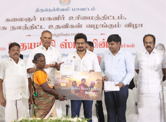 கலைஞர் மகளிர் உரிமைத் திட்டம் எனும் மகத்தான திட்டத்தை முதலமைச்சர், பேரறிஞர் அண்ணா பிறந்த செப்டம்பர் 15 ஆம் தேதி தொடங்கி வைத்தார். 1 கோடியே 6 லட்சத்து 58 ஆயிரம் மகளிருக்கு இந்த உரிமைத்தொகை வழங்கப்பட்டுள்ளது. இந்த திருநெல்வேலி மாவட்டத்தில் மட்டும், கிட்டத்தட்ட 2 லட்சத்து 48 ஆயிரம் பேர் பயன்பெற்றுள்ளனர். ஒரே நேரத்தில் இவ்வளவு பெரிய திட்டம் செயல்படுத்தப்பட்டது, இதுவே முதல்முறை. இந்த திட்டத்தின்படி ஒவ்வொரு மாதமும் 15 ஆம் தேதி தான் உங்களுக்கு உரிமைத் தொகை வழங்குவதற்கான தேதி என்றாலும், ஒரு நாள் முன்னதாக 14 ஆம் தேதியே கழக அரசால் உரிமைத் தொகை வழங்கப்பட்டு வருகிறது. இன்றைக்கு 1200 டெபிட் கார்டுகளை வழங்குகிறோம் என்றால், இவை பணம் எடுப்பதற்கான கார்டுகள் மட்டுமல்ல, உங்கள் வாழ்க்கையை மாற்றப் போகிற துருப்புச்சீட்டு. இந்தத் திட்டத்தை பின்பற்றி, கர்நாடகா, தெலங்கானா போன்ற மாநிலங்களில் மகளிருக்கு உரிமைத் தொகை வழங்கப்படும் என வாக்குறுதிகள் வழங்கப்பட்டு வருகின்றன.