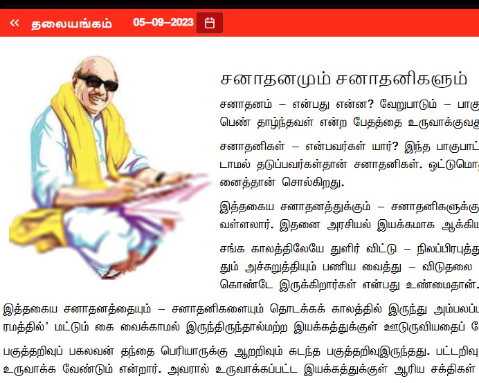 ’’சனாதனமும் சனாதனிகளும்’’ என்ற தலைப்பில் முரசொலியில் வெளிவந்துள்ள தலையங்கம் வருமாறு: