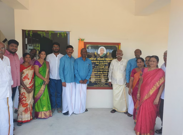 தங்களது தாயாரின் பெயரில் ‘தனசேகரி அம்மாள் அறிவரங்கம்’ என்ற பெயர் சூட்டப்பட்டுள்ள கட்டிடத்தை தனது தந்தை அன்பழகன் கரங்களால் திறக்கச் செய்து, திருவாரூர் மாவட்ட ஆட்சியர் தி.சாருஸ்ரீ முன்னிலையில் சகோதரர்களான அ.இளங்கோவன், அ.முத்தழகன், அ. ராஜகோபால் ஆகியோர் இணைந்து மாவட்ட முதன்மைக் கல்வி அலுவலர் முனைவர் அ.புகழேந்தியிடம் ஒப்படைப்பு செய்தனர்.