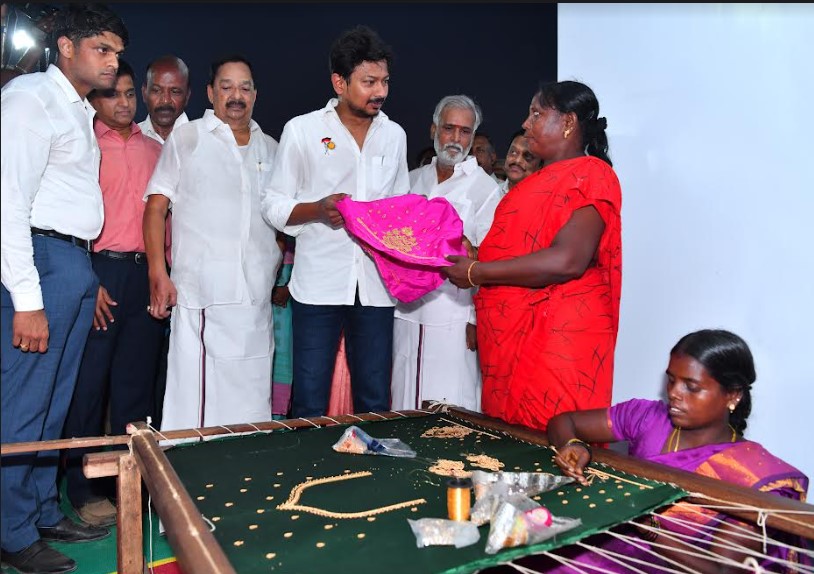 சென்னை தீவுத்திடலில் சுற்றுலாத்துறை மற்றும் தமிழ்நாடு சுற்றுலா வளர்ச்சிக் கழகத்தின் சார்பில் சென்னை விழா சர்வதேச கைத்தறி, கைவினைப்பொருட்கள் மற்றும் உணவுத்திருவிழா 28.04.2023 தொடங்கி மே மாதம் 14 ந்தேதி வரை நடைபெற உள்ளது. இதற்கான தொடக்க விழாவில் இளைஞர் நலன் மற்றும் விளையாட்டு மேம்பாட்டுத்துறை அமைச்சர் .உதயநிதி ஸ்டாலின் சென்னை விழா – சர்வதேச கைத்தறி, கைவினைப்பொருட்கள் மற்றும் உணவுத்திருவிழா அரங்கங்களை திறந்து வைத்து பார்வையிட்டார்.