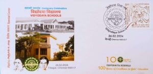 வித்யோதயா பள்ளிகள், பெண் குழந்தைகளின் கல்வி மேம்பாட்டில், 100 ஆண்டுகள் சிறப்பாக செயல்பட்டதை நினைவுகூறும்விதமாக, இந்திய அஞ்சல் துறை, சென்னை நகர மண்டலம், ஒரு சிறப்பு அஞ்சல் உறையை 24.02.2024 அன்று வெளியிட்டது.