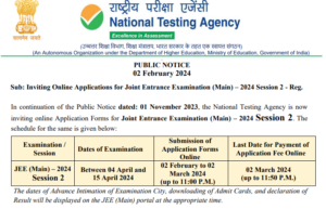JEE Main 2024: ஜே.இ.இ தேர்வுக்கு பிப்ரவரி 2 ஆம் தேதியில் இருந்து மார்ச் 2 ஆம் தேதி வரை விண்ணப்பிக்கலாம் என்று அறிவிக்கப்பட்டுள்ளது.