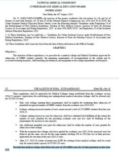 இந்தியாவின் தேசிய மருத்துவ ஆணையம் (National Medical Commission) கடந்த ஆகஸ்ட் 16-ஆம் தேதி அறிவிப்பு ஒன்றை வெளியிட்டது. அதன்படி புதிய மருத்துவக் கல்லூரிகள் துவங்குவதற்கும் இடங்களை அதிகரிப்பதற்கும் சம்பந்தப்பட்ட “மாநிலத்திலோ, யூனியன் பிரதேசத்திலோ பத்து லட்சம் பேருக்கு 100 எம்.பி.பி.எஸ். இடங்கள்” என்ற அளவுக்குள் அது பொருந்திருக்க வேண்டும் என குறிப்பிடப்பட்டிருந்தது.