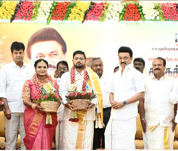 இன்றைக்குக் கருத்துக்கணிப்பு வரக்கூடிய சூழ்நிலை எல்லாம் பார்க்கிறபோது, எப்படி தமிழ்நாட்டில் ஒரு மிகப்பெரிய வெற்றியைக் கடந்த சட்டமன்ற, நாடாளுமன்றத் தேர்தலில் பெற்றோமோ, அதேபோல் வட மாநிலத்தில் நடைபெற இருக்கக்கூடிய 5 மாநிலத்தின் சட்டமன்றத் தேர்தலில் நிச்சயமாக, உறுதியாக இந்தியா கூட்டணி மிகப்பெரிய வெற்றியைப் பெறக்கூடிய ஒரு சூழ்நிலை உருவாகி இருக்கிறது. மோடி அவர்கள் தலைமையில் ஆண்டு கொண்டிருக்கக்கூடிய ஒன்றிய பாஜக ஆட்சிக்கு முற்றுப்புள்ளி வைக்கக்கூடிய சூழ்நிலை உருவாகிக் கொண்டிருக்கிறது. 2024-ல் நடைபெறவிருக்கக்கூடிய நாடாளுமன்ற தேர்தலுக்கு நீங்கள் எல்லாம் தயாராக இருக்கவேண்டும், தயாராக இருக்கவேண்டும் என்று நான் இந்த நேரத்தில் கேட்டுக்கொண்டு, மணமக்களை பொறுத்தவரைக்கும் எப்போதும் கோரிக்கைகள் வைக்கமாட்டேன். அதிலும் நம்முடைய மணமகள் டாக்டர், மணமகன் திரு. ராதாகிருஷ்ணன், இன்ஜினியர், BE படித்திருக்கிறார். நாட்டில் இருக்கக்கூடிய நிலவரங்கள் அத்தனையும் அவர்களுக்கு நன்றாக புரியும்.