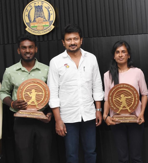 இந்நிலையில் அவர்கள் இருவரும் இன்று (30.05.2023) சென்னை முகாம் அலுவலகத்தில் இளைஞர் நலன் மற்றும் விளையாட்டு மேம்பாட்டுத்துறை அமைச்சர் உதயநிதி ஸ்டாலினை சந்தித்து வாழ்த்து பெற்றனர்.