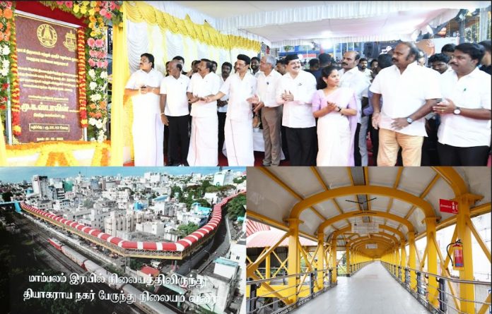 மாம்பலம் இரயில் நிலைய நடைமேம்பாலத்தை தியாகராய நகர் பேருந்து நிலையத்துடன் இணைக்கும் வகையிலும், மாம்பலம் இரயில் நிலைய நடைமேம்பாலத்திலிருந்து இரயில்வே மார்க்கெட் சாலை, மேட்லி சாலை வழியாக தியாகராய நகர் பேருந்து நிலையம் வரை சீர்மிகு நகர திட்ட நிதியின் கீழ், 28 கோடியே 45 இலட்சம் ரூபாய் செலவில், 7 மீட்டர் உயரத்தில், 570 மீட்டர் நீளம் மற்றும் 4.20 மீட்டர் அகலத்தில் நகரும் படிக்கட்டு மற்றும் மின்தூக்கிகளுடன் கூடிய ஆகாய நடைமேம்பாலம் அமைக்கப்பட்டுள்ளது.