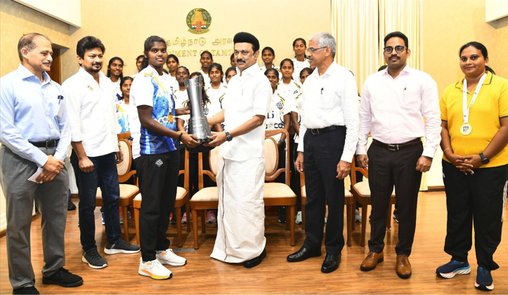 இந்த அணியில் உள்ள 12 வீராங்கனைகள் தமிழ்நாடு விளையாட்டு ஆணையத்தில் பயிற்சி பெற்ற முன்னாள் மாணவியர்கள் என்பது குறிப்பிடத்தக்கது. இந்த நிகழ்ச்சியில், இளைஞர் நலன் மற்றும் விளையாட்டு மேம்பாட்டுத்துறை அமைச்சர் உதயநிதி ஸ்டாலின், தலைமைச் செயலாளர் சிவ்தாஸ் மீனா, இளைஞர் நலன் மற்றும் விளையாட்டு மேம்பாட்டுத்துறை கூடுதல் தலைமைச் செயலாளர் முனைவர் அதுல்ய மிஸ்ரா, தமிழ்நாடு விளையாட்டு மேம்பாட்டு ஆணைய உறுப்பினர் செயலர் ஜெ. மேகநாத ரெட்டி, மற்றும் அரசு உயர் அலுவலர்கள் கலந்து கொண்டனர்.