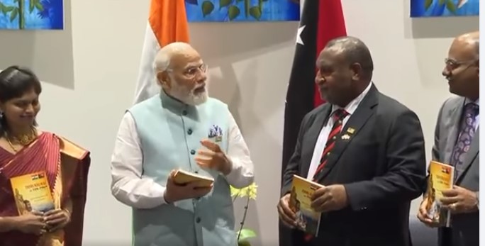 பாரதப் பிரதமர் நரேந்திர மோடி, நமது திருக்குறளின் புதிய மொழிபெயர்ப்பை, பப்புவா நியூ கினியா நாட்டு மொழியான டோக் பிசின் மொழியில் இன்று வெளியிட்டிருக்கிறார்.