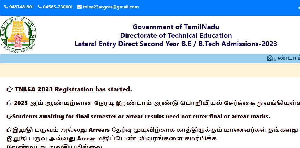 தமிழ்நாட்டில் உள்ள அரசு / அரசு உதவி பெறும் பொறியியல் கல்லூரிகள், அண்ணா பல்கலைக்கழக துறை மற்றும் உறுப்பு கல்லூரிகள்/ அண்ணாமலை பல்கலைக்கழகம் மற்றும் சுயநிதி பொறியியல் கல்லூரிகளில் 2023-2024 ஆம் கல்வி ஆண்டில் சேர்க்கை பெற விண்ணப்பிக்கலாம். இணையதளம் மூலம் மட்டுமே விண்ணப்பிக்க வேண்டும்.