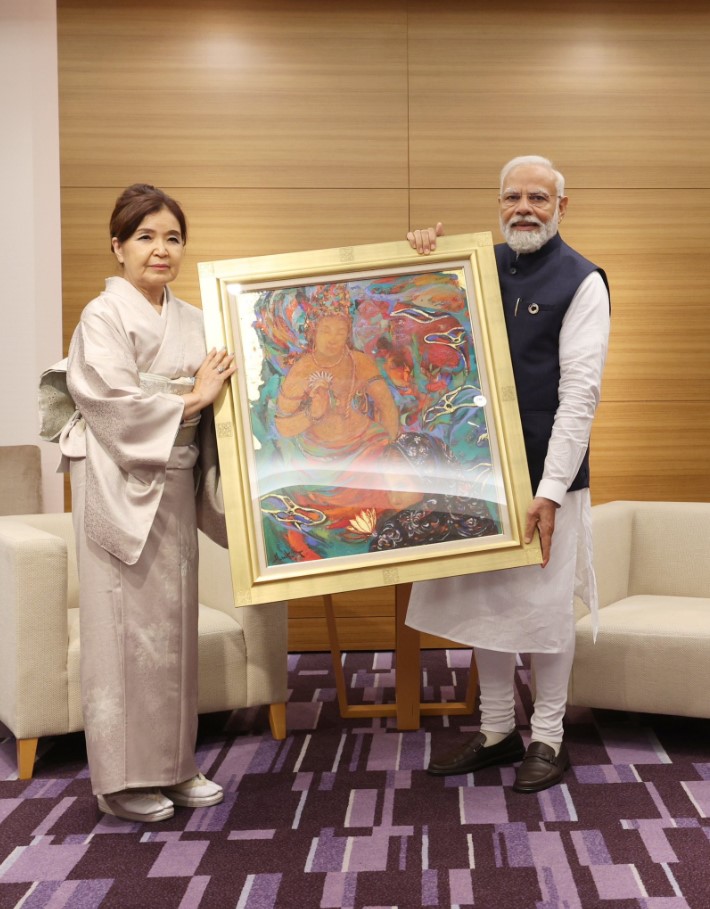 ஹிரோஷிமாவில் பிறந்த திருமதி ஹிரோகோ தகயாமா ஒரு மேற்கத்திய பாணி ஓவியர் ஆவார். அவருடைய படைப்புகள் இரண்டு தசாப்தங்களுக்கும் மேலாக இந்தியாவுடனான அவரது ஆழமான தொடர்பால் அழுத்தமான தாக்கத்தை ஏற்படுத்துகின்றன. அவர் இந்தியாவில் பல பயிற்சி வகுப்புகள் மற்றும் கண்காட்சிகளை நடத்தியுள்ளார். மேலும் சாந்தி நிகேதனில் உள்ள விஸ்வ பாரதி பல்கலைக்கழகத்தில் வருகை பேராசிரியராக இருந்தவர். 2022 இல் உருவாக்கப்பட்ட தனது முக்கிய படைப்புகளில் ஒன்றான புத்தபெருமானின் ஓவியத்தை அவர் பிரதமருக்கு வழங்கினார்.