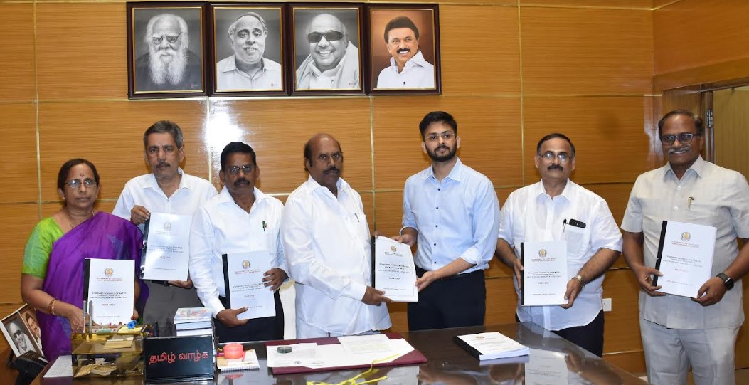பொதுப்பணிகள், நெடுஞ்சாலைகள் மற்றும் சிறுதுறைமுகங்கள் துறை அமைச்சர் எ.வ.வேலு, 28.4.2023 அன்று சென்னை, தலைமைச் செயலகத்தில், 2023-2024 ஆம் ஆண்டுக்கான பல்வேறு துறைகளில் கட்டப்படும் கட்டடங்களின் மதிப்பீடு தயார் செய்வதற்குரிய, கட்டுமானப் பொருட்கள் விலை விவரம் மற்றும் கட்டுமானத் தொழிலாளர்கள் தினக்கூலி விவரம் அடங்கிய செந்தர விலை விவர பட்டியலை (Standard Schedule of Rates) வெளியிட்டார்.