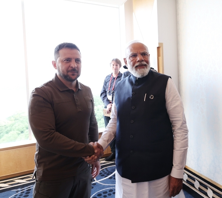 ஹிரோஷிமாவில் ஜி-7 உச்சி மாநாட்டின்போது 2023 மே 20-ம் தேதியன்று பிரதமர் மோடி, உக்ரைன் அதிபர் விலாடிமிர் செலென்ஸ்கியைச் சந்தித்தார்.