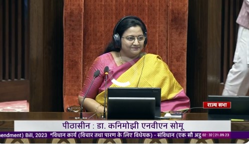 ”13 பெண் உறுப்பினர்களைக் கொண்ட மாநிலங்களைவை (ராஜ்யசபா) துணைத் தலைவர்கள் குழுவை குடியரசுத் துணைத்தலைவரும் மாநிலங்களவைத் தலைவருமான ஜக்தீப் தன்கர் அமைத்துள்ளார். அக்குழுவில் திமுக-வை சேர்ந்த மாநிலங்களவை உறுப்பினர் டாக்டர் கனிமொழி என்.வி.என்.சோமு இடம் பெற்றுள்ளார்.