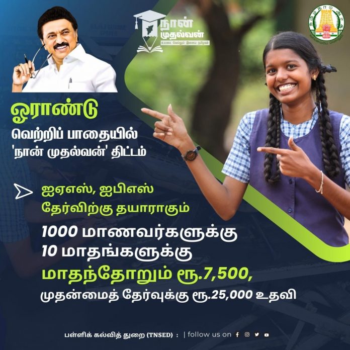 உயர் கல்வியில் அடியெடுத்து வைக்கும் பொறியியல், கலை மற்றும் அறிவியல் கல்லூரி மாணவர்கள் அனைவரும், இன்றைய தொழில் துறைக்கு தேவையான நவீன திறன்களை கற்றுணர்ந்து அவர்களது துறைகளில் வெற்றி பெற ஏதுவாக முதலமைச்சர் அவர்களால் 2022 ஆம் ஆண்டு மார்ச் மாதம் தொடங்கி வைக்கப்பட்ட மாபெரும் திறன் மேம்பாட்டிற்கான திட்டம் “நான் முதல்வன்” திட்டம் ஆகும்.