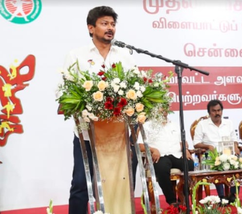 இப்போது கோடை விடுமுறை முடிந்து கல்விக்கூடங்கள் அனைத்தும் திறந்துவிட்டன. நீங்கள் விளையாடுவதை கைவிடக்கூடாது. அதற்குத்தான் விளையாட்டு வகுப்பு இருக்கிறது. இங்கு அரசு ஊழியர்கள் பிரிவில் ஆசிரியர்களும் இருப்பீர்கள் என்று நம்புகிறேன். முக்கியமாக கணிதம் அல்லது அறிவியல் ஆசிரியர்கள் உடற்கல்வி வகுப்பை கடன் கேட்காதீர்கள் என்று உரிமையோடு கூறிக்கொள்கிறேன். நம் மாணவர்கள் தொடர்ந்து விளையாடட்டும். அவர்களை விளையாட அனுமதியுங்கள். விளையாட்டுத்துறையை பொறுத்தவரை தமிழ்நாட்டில் இப்போது ஓர் எழுச்சி இருக்கிறது.
