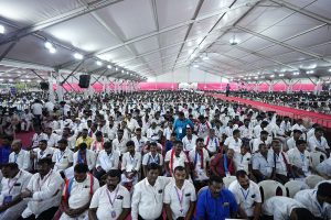விசிக என்றாலே மேடை ஒழுங்கு இருக்காது என்கிற கருத்தை முழுமையாக ஒழித்துள்ளது விசிக. திட்டமிட்ட நிகழ்வு, தலைவரின் ராம்ப் வாக், முறையான இருக்கை அமைப்பு என அசத்தியிருக்கிறார்கள். இது மற்ற அரசியல் கட்சிகளையே வியப்பில் ஆழ்த்தியுள்ளது. அதுமட்டுமில்லையாம் வரும் டிசம்பர் மாதம் 23 தேதி திருச்சியில் ‘வெல்லும் ஜனநாயகம்’ என்கிற தலைப்பில் பிரமாண்ட மாநாட்டை தடத்த உள்ளார்கள். நூறு ஏக்கர் பரப்பளவில் 10 லட்சம் பேரை இந்த மாநாட்டில் ஒன்று கூட்டி இனி விசிக-வை தமிழகத்தில் தவிர்க்க முடியாத சக்தியாக காட்ட முணைந்துள்ளார்கள்.