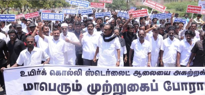 ஸ்டெர்லைட் நச்சு ஆலை தொடங்கப்பட்ட போது மறுமலர்ச்சி தி.மு.க. தூத்துகுடியில் 5.3.1996 இல் உண்ணாவிரதம், 12.03.1996 இல் கடையடைப்பு, 1.4.1996 இல் ஸ்டெர்லைட் எதிர்ப்பு பேரணி 1997 இல் திருவைகுண்டம் முதல் தூத்துக்குடி வரை 3 நாட்கள் ஸ்டெர்லைட் எதிர்ப்பு நடைபயணம், 30.08.1997 இல் 30,000 பேர் கலந்து கொண்ட ஸ்டெர்லைட்முற்றுகை போராட்டம் என்று பல மக்கள் திரள் போராட்டங்களை நடத்தியது.
