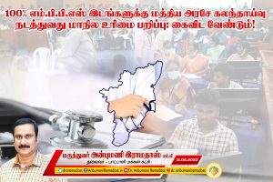 ஒருபுறம் கூட்டுறவு கூட்டாட்சி தத்துவம் பேசிக் கொண்டு படிப்படியாக மாநில அரசின் உரிமைகளை மத்திய அரசு பறிப்பது நியாயமற்றது. எனவே, 100% மருத்துவ இடங்களுக்கும் கலந்தாய்வு நடத்தும் முடிவை மத்திய அரசு கைவிட வேண்டும். அனைத்து இடங்களுக்கும் கலந்தாய்வு நடத்தும் திட்டத்தை தேசிய மருத்துவ ஆணையம் முன்மொழிவாக மட்டுமே வைத்திருப்பதால், அதை கைவிடும்படி மத்திய அரசிடம் தமிழ்நாடு அரசு கடுமையாக வலியுறுத்த வேண்டும்.