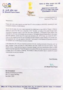 நாடாளுமன்றத்தில் ஆகஸ்ட் 8, 2023 அன்று அவசர முக்கியத்துவம் வாய்ந்த பிரச்சனை என்ற அடிப்படையில் விதி எண் 377 வது பிரிவின் கீழ் மதுரை எய்ம்ஸ் பற்றி நான் எழுப்பிய கேள்விக்கு ஒன்றிய சுகாதார மற்றும் குடும்ப நலத் துறை இணை அமைச்சர் டாக்டர் பாரத் பிரவீன் குமார் (DO No. H 11016/04/2023/PMSSY – III/ 23.09.2023) பதில் அளித்துள்ளார்.