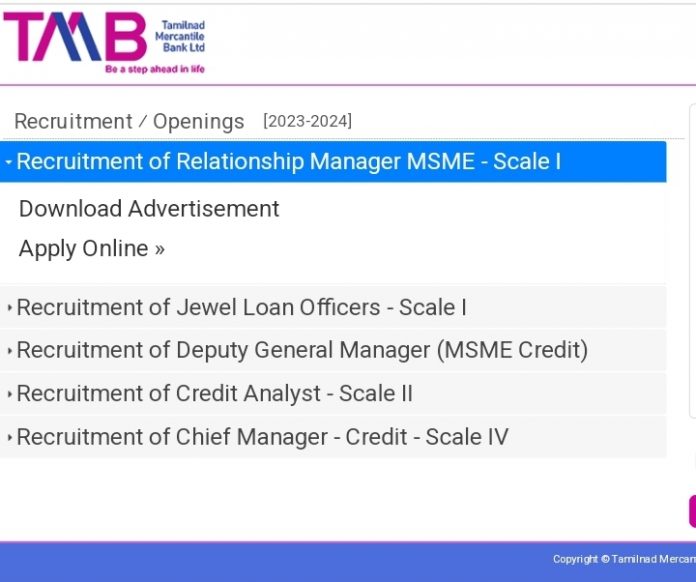 விண்ணப்பிக்கும் முறை Online https://www.tmbnet.in/tmb_careers/