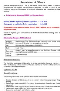 தகுதியும் திறமையும் உள்ள ஆர்வமுள்ளவர்கள் கீழே வழங்கப்பட்டுள்ள ஆன்லைன் முகவரி மூலம் 30/06/2023 க்குள் விண்ணப்பிக்குமாறு https://www.tmbnet.in/tmb_careers/ கேட்டுக்கொள்ளப்படுகிறது.